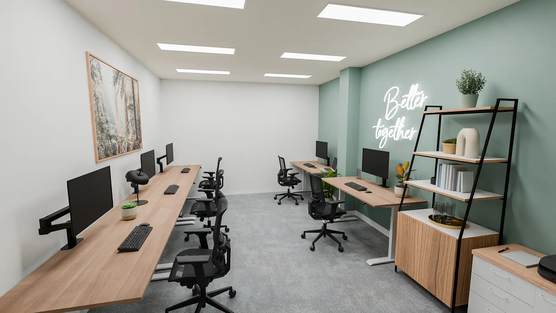 Perfect for a team of up to 5 people, this internally facing suite can be fully furnished upon request*. Members also enjoy access to digital reception, breakout lounges, kitchens, end of trip facilities, and toilets. Additionally, there is street parking for staff and clients.