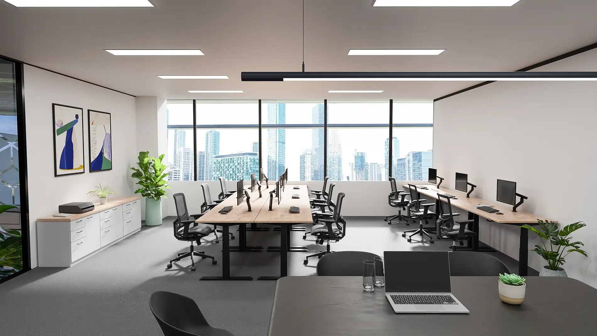 Perfect for a team of up to 16 people, this externally facing suite boasts and abundance of natural light and can be fully furnished upon request*. Members also enjoy access to digital reception, breakout lounges, kitchens, end of trip facilities, and toilets. Additionally, there is street parking for staff and clients.
