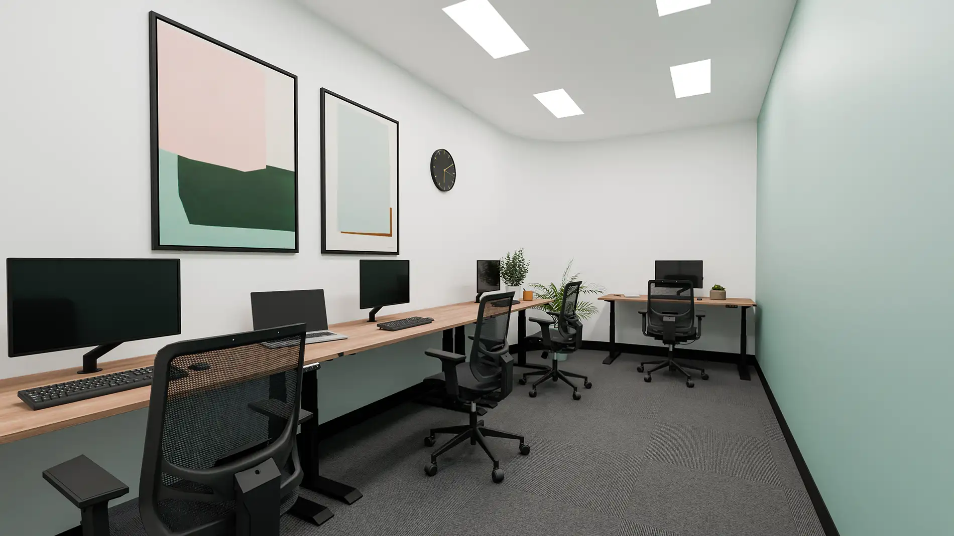 Suitable for a team of up to 4 people, this internal facing office is the ideal location for a smaller team and can come furnished with chairs and desks.