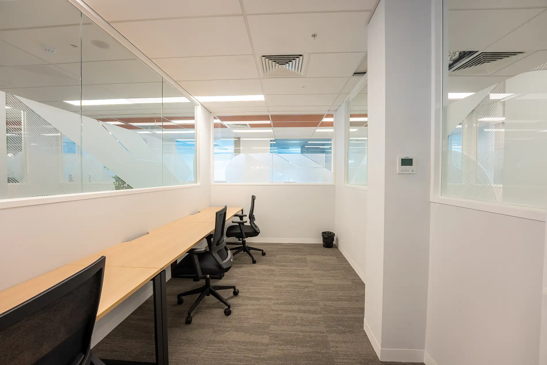 Perfect for a team of up to 3 people, this internally facing suite can be fully furnished upon request*. Members also enjoy access to a digital reception, waiting areas, breakout lounges, kitchens, end of trip facilities, and toilets. Additionally, there is shopping centre parking for staff and clients.